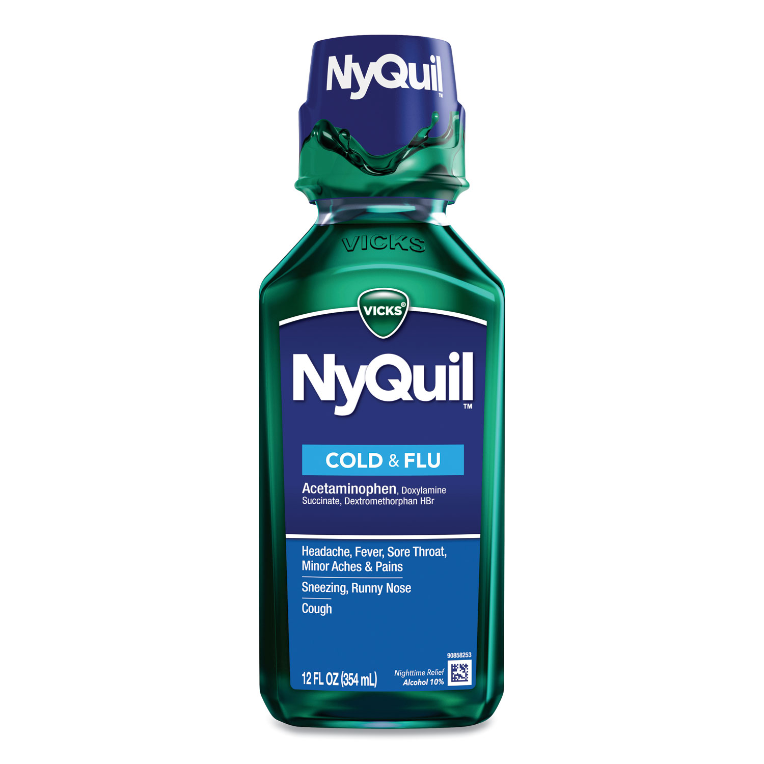 Nyquil Cold And Flu Nighttime Liquid, 12 Oz Bottle, 12/carton