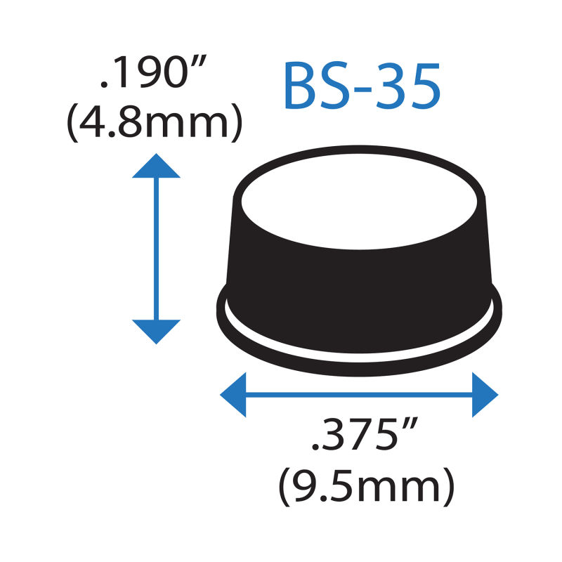 Cylindrical flat top bumper stops are commonly used to protect surfaces and prevent sliding. The flat top shape is ideal for load bearing applications as feet on the bottom of small appliances, cutting boards, or laptops. The flat top design can be used as spacers under glass tables, airflow under network equipment, and behind picture frames to protect walls. Simply peel and stick the bumper feet to your required location. These bumpers can be used everywhere and the application possibilities are endless. Bumper Specialties BS-35 is equivalent to 3M Bumpon SJ5333, SJ5733, SJ67A2