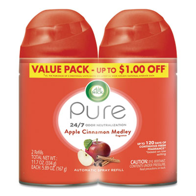 Freshmatic Ultra Spray Refill, Apple Cinnamon Medley, 5.89 Oz Aerosol Spray, 2/pack, 3 Packs/carton