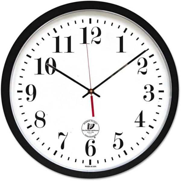 Chicago Lighthouse Atomic Slimline Contemporary Clock, 16-1/2″, Black