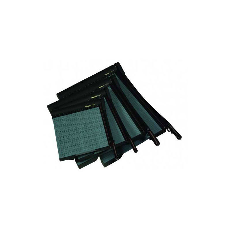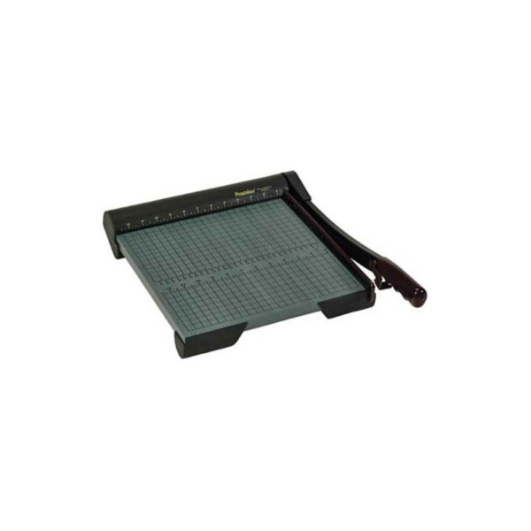 Heavy-duty 3/4″ thick wood base. Fully-hardened high-carbon steel blades cut up to 20 sheets at once. Accurately cuts paper, matte board, cardboard, film, tissue, and textiles. Permanent 1/2″ grid and dual English and metric rulers ensure proper alignment. Patented automatic blade latch locks with every cutting motion. Finger guard protects entire blade length. Torsion spring prevents blade from accidentally falling during operation. Non-skid rubber feet. Limited lifetime warranty on blades, one year on other components.