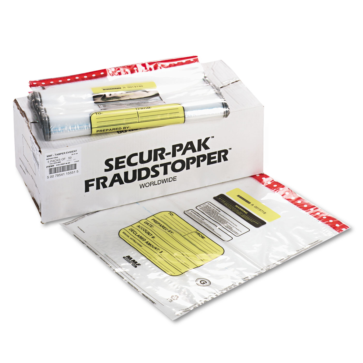 12 Bundle Capacity Tamper-Evident Cash Bags, 20 X 24, Clear, 250 Bags/box