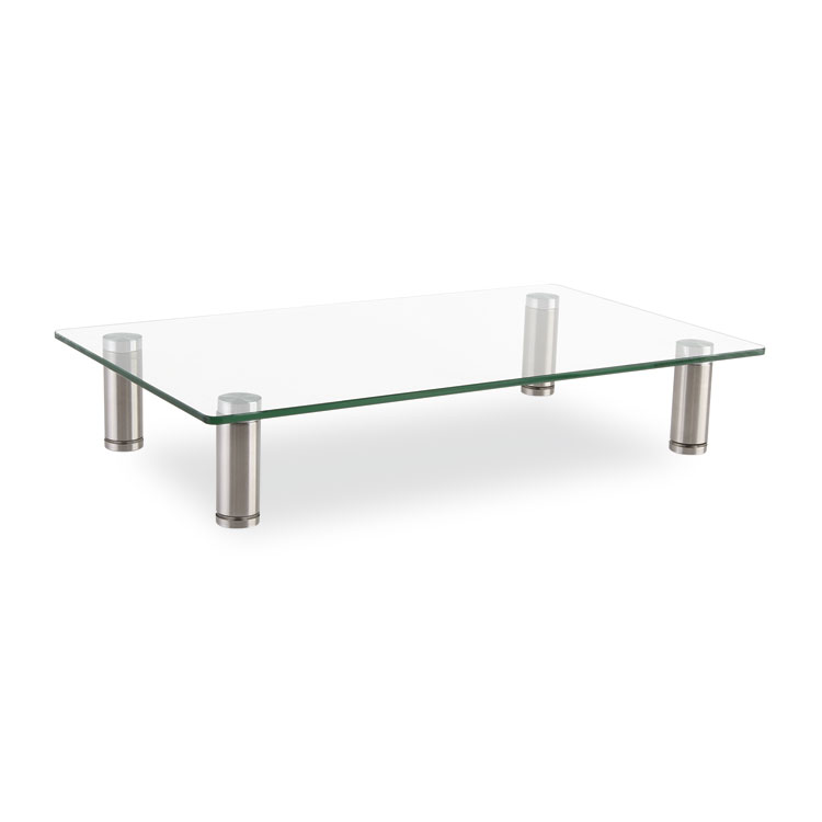 Adjustable Tempered Glass Monitor Riser, 15.75″ X 9.5″ X 3″ To 3.5″, Clear/silver, Supports 44 Lbs
