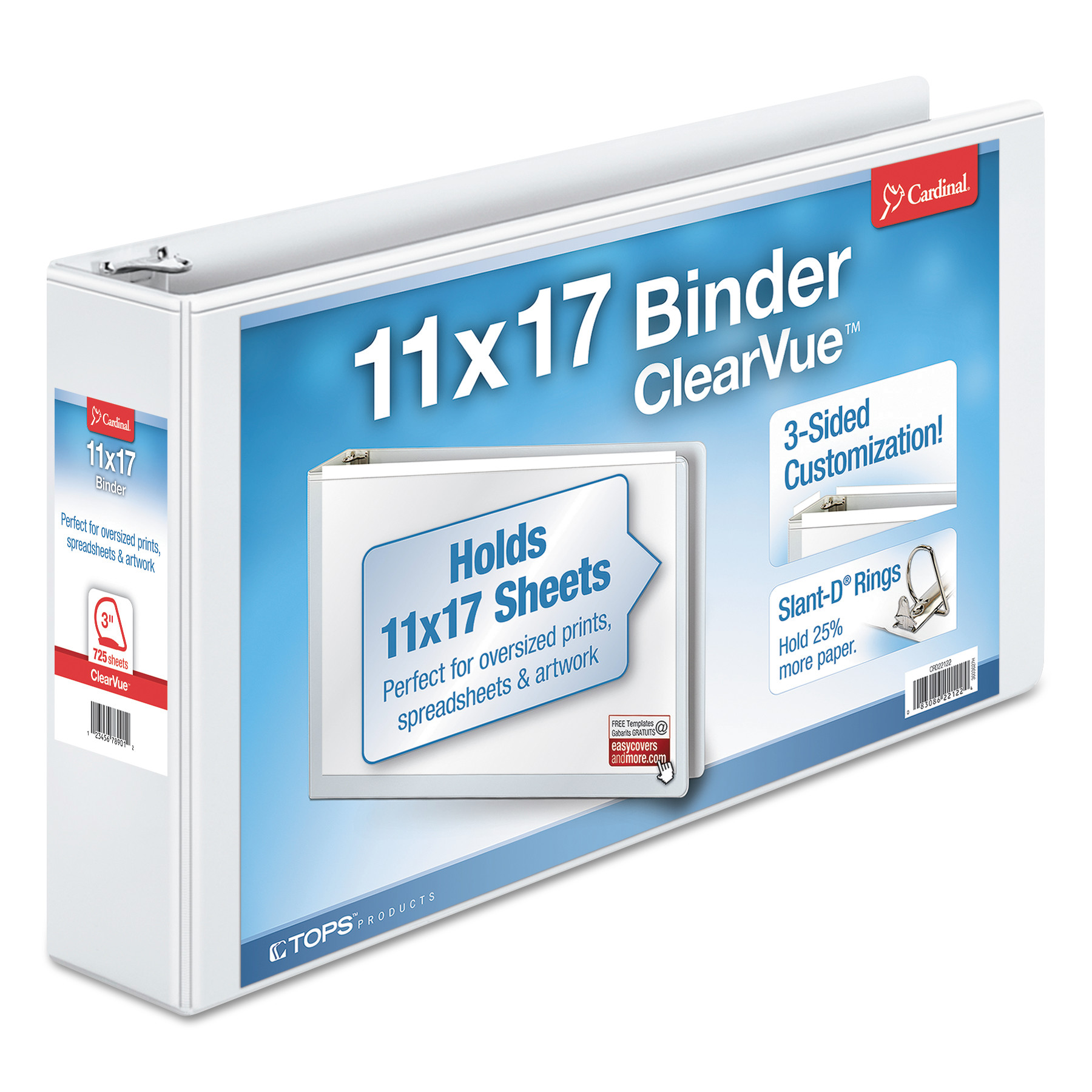 Clearvue Slant-D Ring Binder, 3 Rings, 3″ Capacity, 11 X 17, White