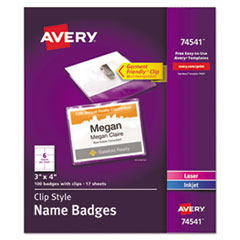 Clip-Style Name Badge Holder With Laser/inkjet Insert, Top Load, 4 X 3, White, 100/box