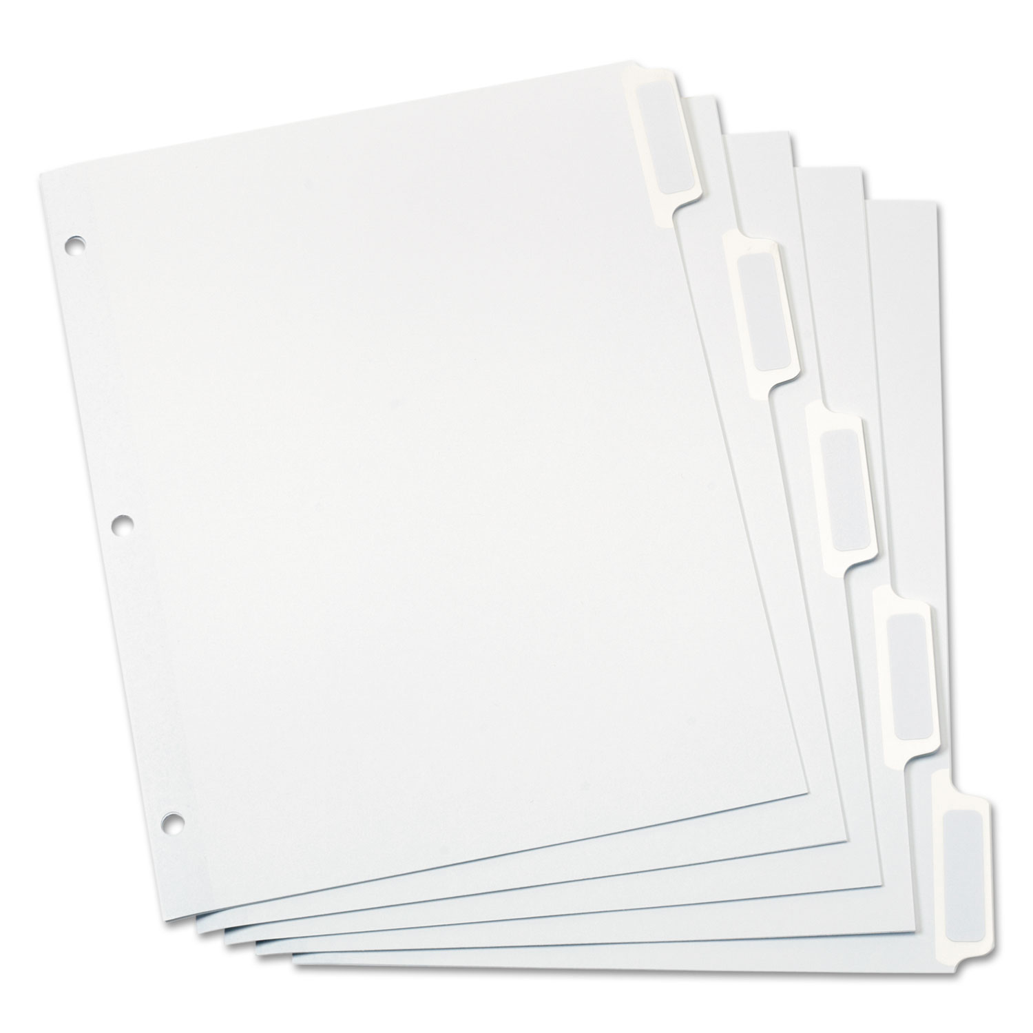 Custom Label Tab Dividers With Self-Adhesive Tab Labels, 5-Tab, 11 X 8.5, White, 5 Sets