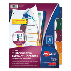 Customizable Table Of Contents Ready Index Dividers With Multicolor Tabs, 5-Tab, 1 To 5, 11 X 8.5, Translucent, 1 Set