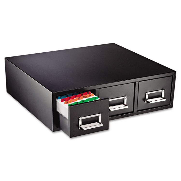 Drawer Card Cabinet, Holds 4,500 3 X 5 Cards, 18.13 X 16 X 5.25, Steel, Black