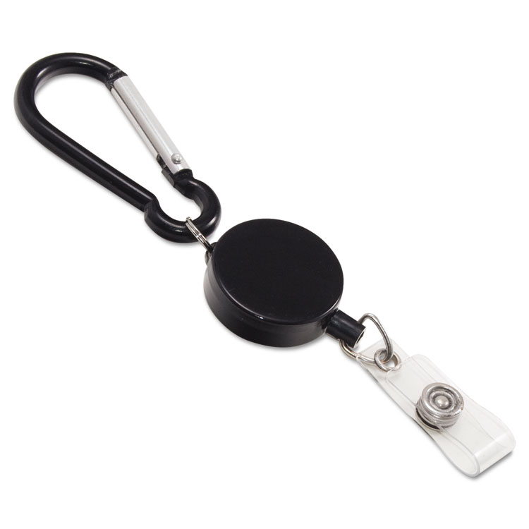 Metal Badge Reel/carabiner Set, 24″ Extension, Black, 5/pk