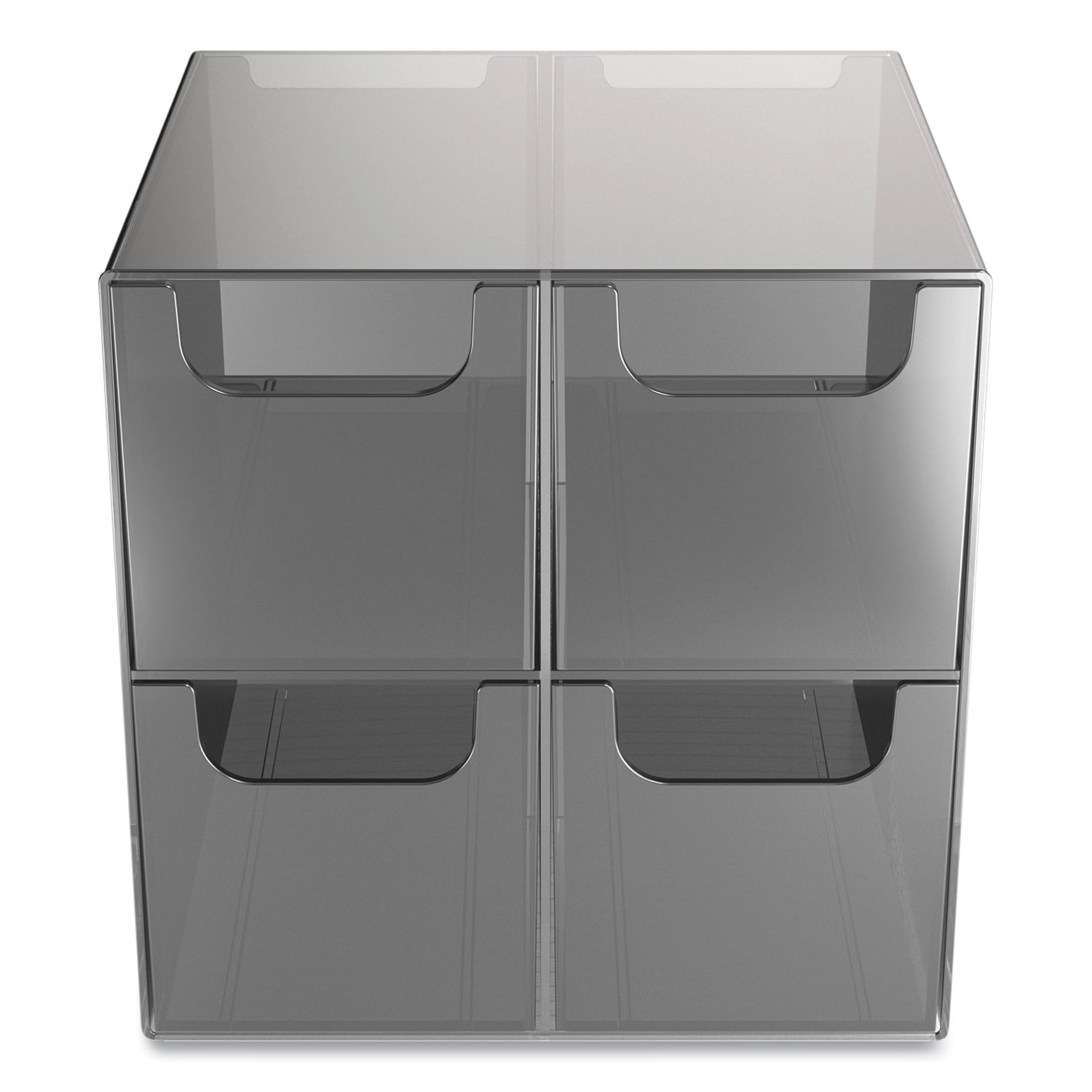 Plastic Cube Desktop Organizer, 4-Compartment, 6 X 6 X 6, Smoke