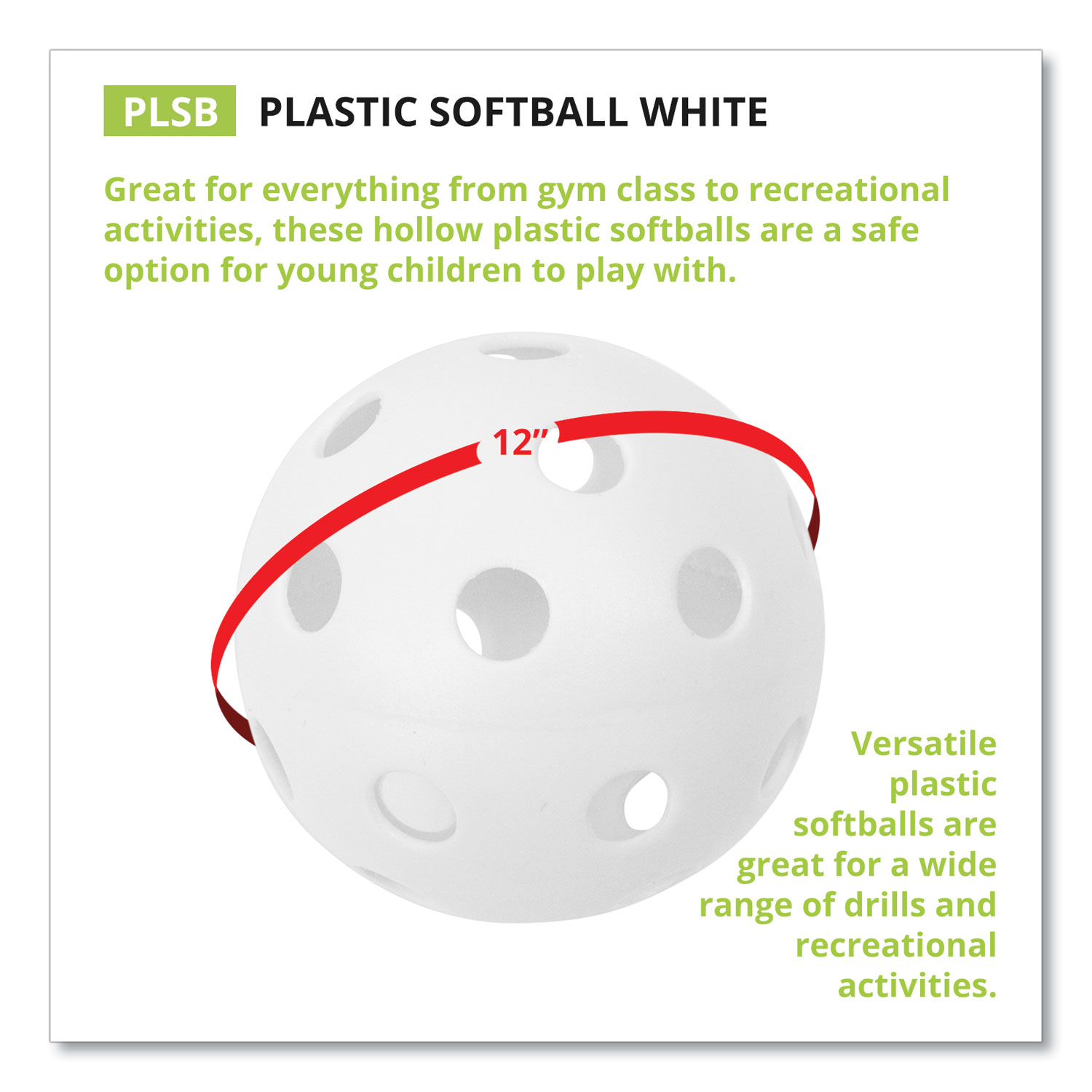 Plastic Softballs, 12″ Diameter, White, Dozen