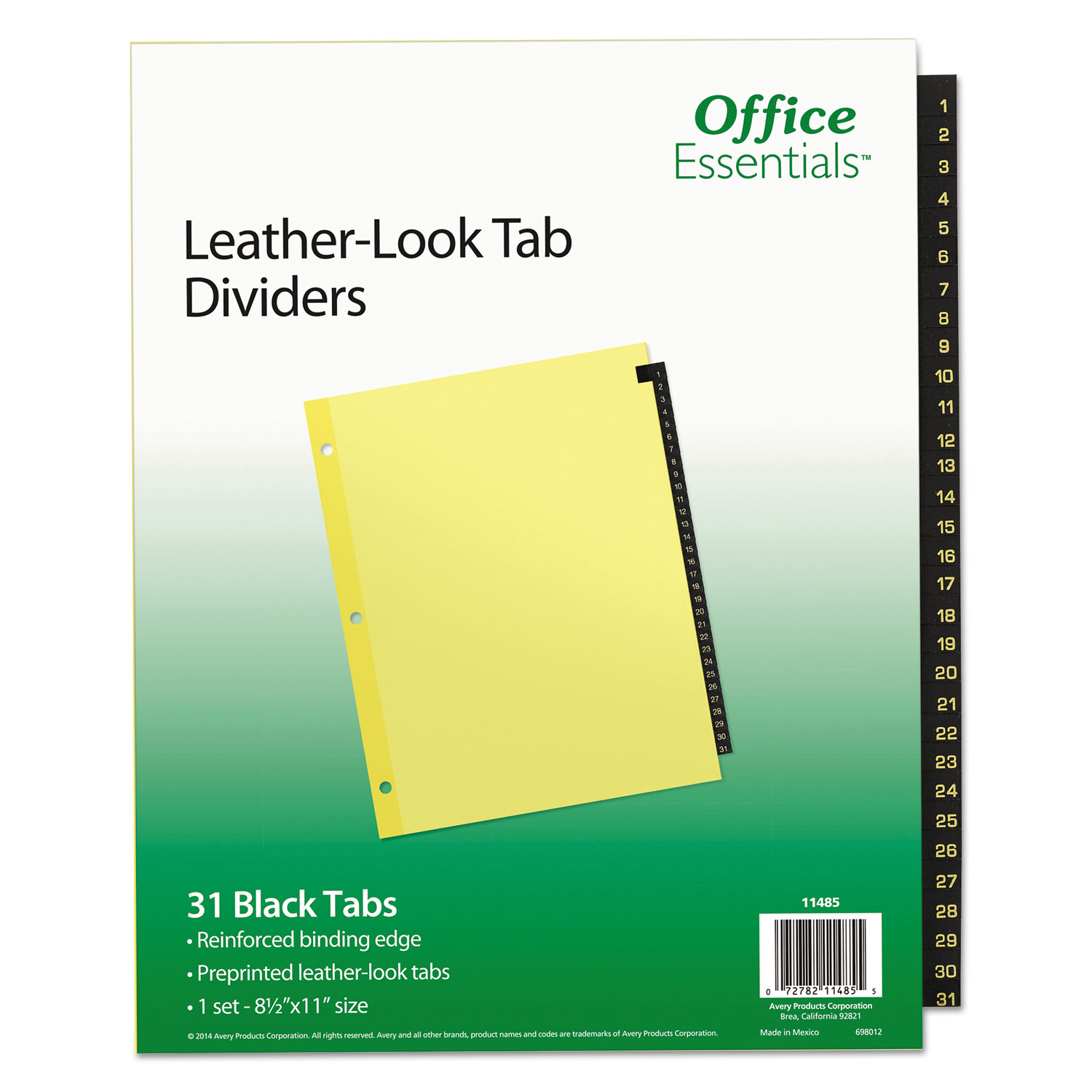 Preprinted Black Leather Tab Dividers, 31-Tab, Letter