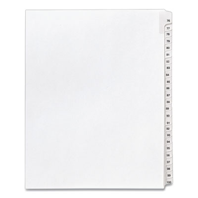 Preprinted Legal Exhibit Side Tab Index Dividers, Allstate Style, 25-Tab, 76 To 100, 11 X 8.5, White, 1 Set, (1704)