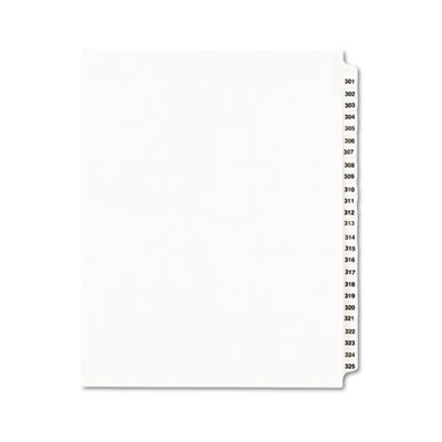 Preprinted Legal Exhibit Side Tab Index Dividers, Avery Style, 25-Tab, 301 To 325, 11 X 8.5, White, 1 Set, (1342)