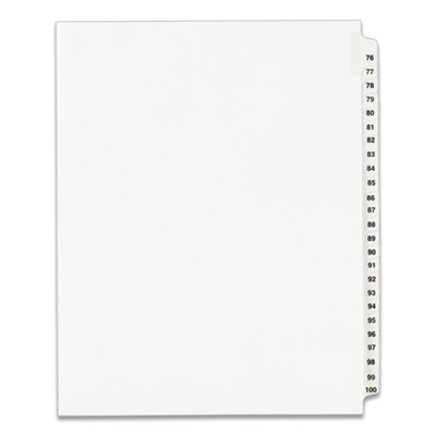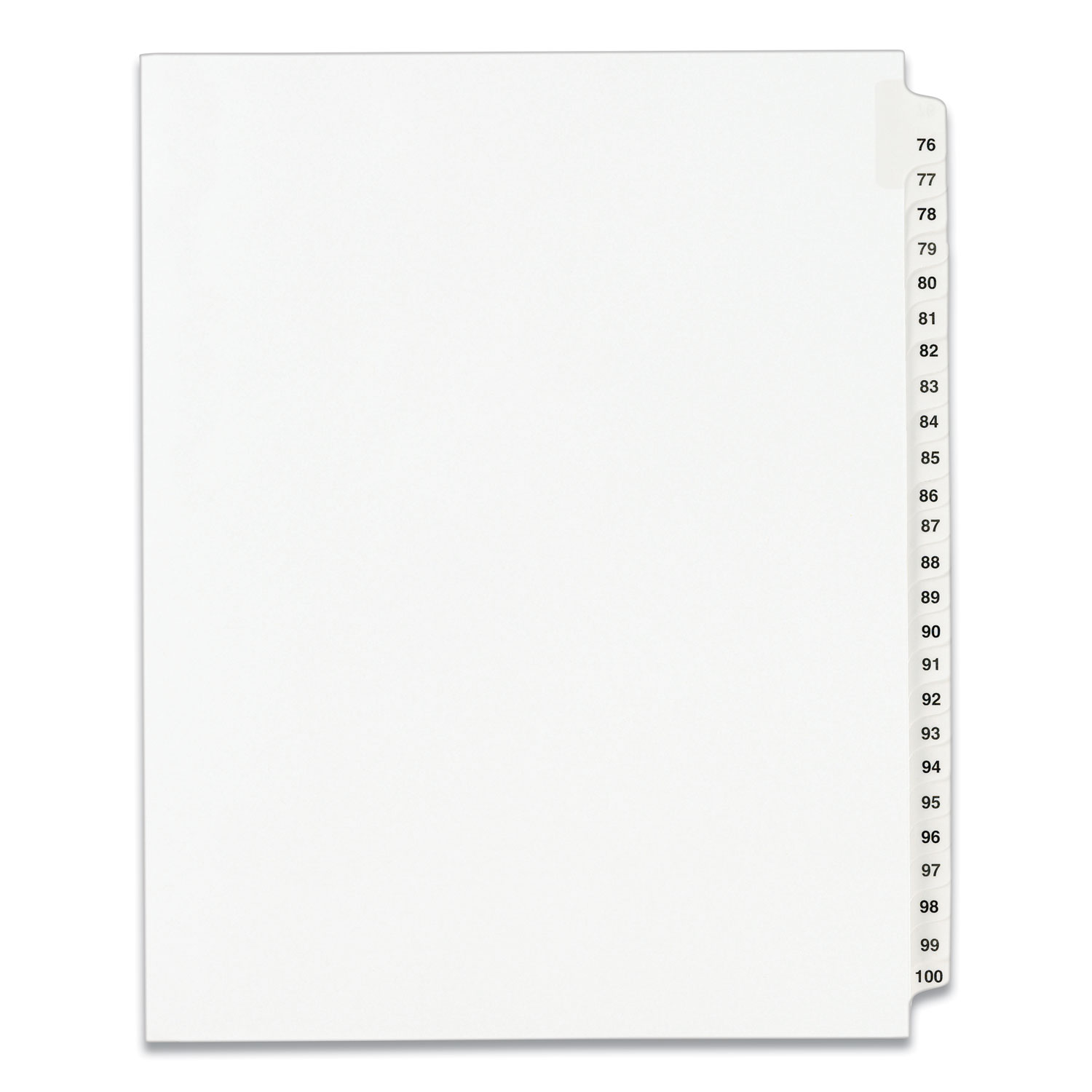 Preprinted Legal Exhibit Side Tab Index Dividers, Avery Style, 25-Tab, 76 To 100, 11 X 8.5, White, 1 Set, (1333)