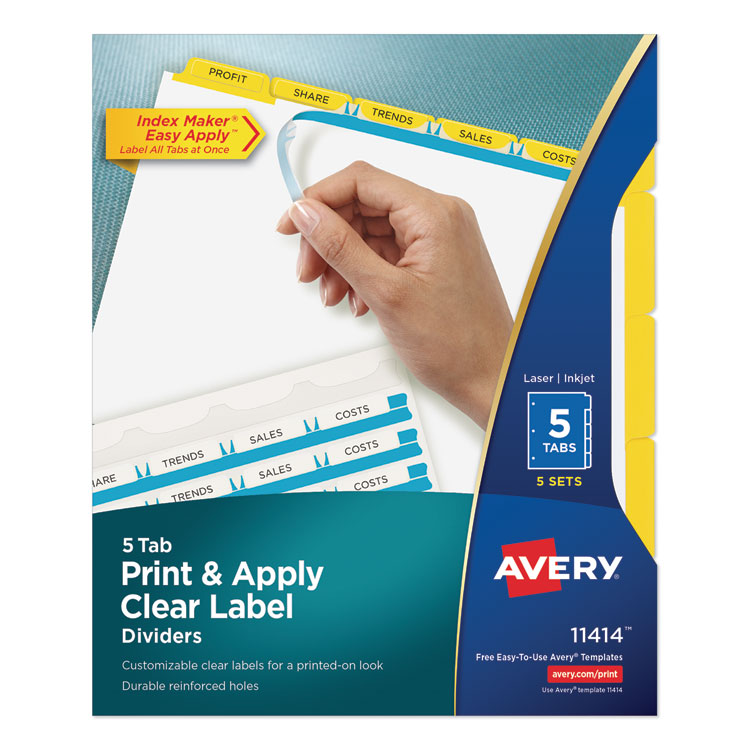 Print And Apply Index Maker Clear Label Dividers, 5 Color Tabs, Letter, 5 Sets