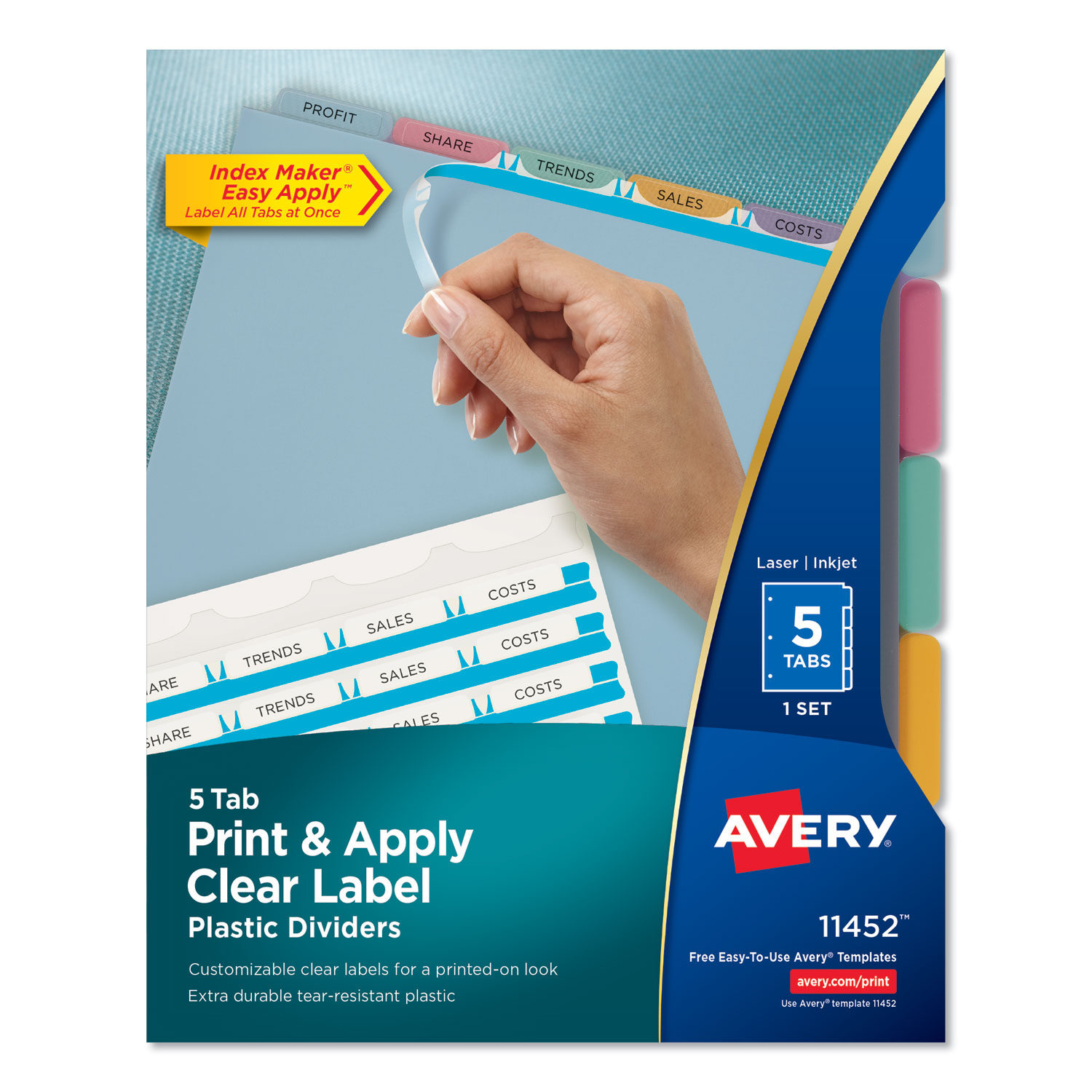 Print And Apply Index Maker Clear Label Plastic Dividers With Printable Label Strip, 5-Tab, 11 X 8.5, Translucent, 1 Set
