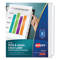 Print And Apply Index Maker Clear Label Sheet Protector Dividers With White Tabs, 8-Tab, 11 X 8.5, Clear, 1 Set