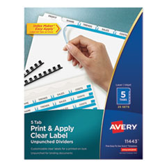 Print and Apply Index Maker Clear Label Unpunched Dividers, 5-Tab, Ltr, 25 Sets