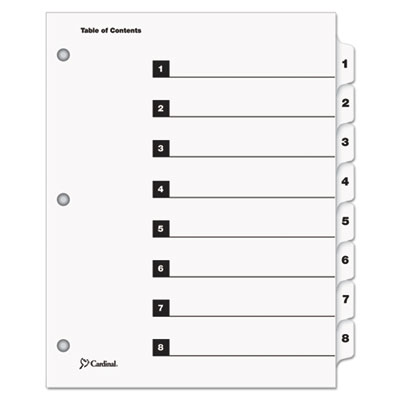 Quickstep Onestep Printable Table Of Contents And Dividers, 8-Tab, 1 To 8, 11 X 8.5, White, 24 Sets