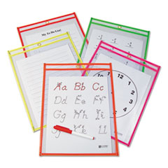 Reusable Dry Erase Pockets, 9 x 12, Assorted Neon Colors, 10/Pack