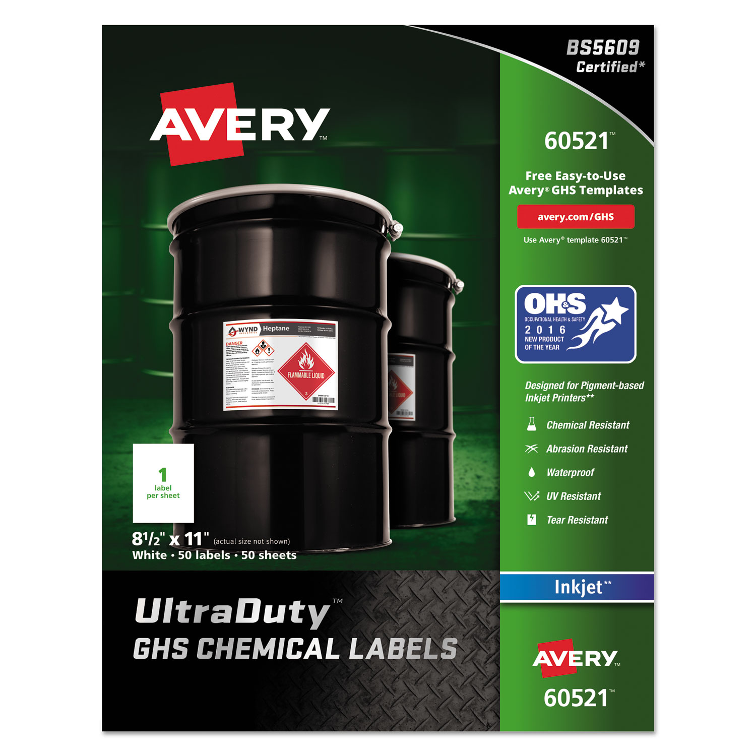 Ultraduty Ghs Chemical Waterproof And Uv Resistant Labels, 8.5 X 11, White, 50/pack