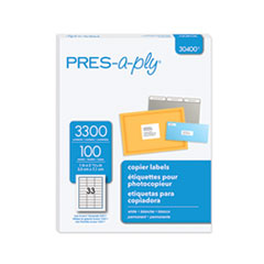 White Copier Labels, Copiers, 1 X 2.81, White, 33/sheet, 100 Sheets/box