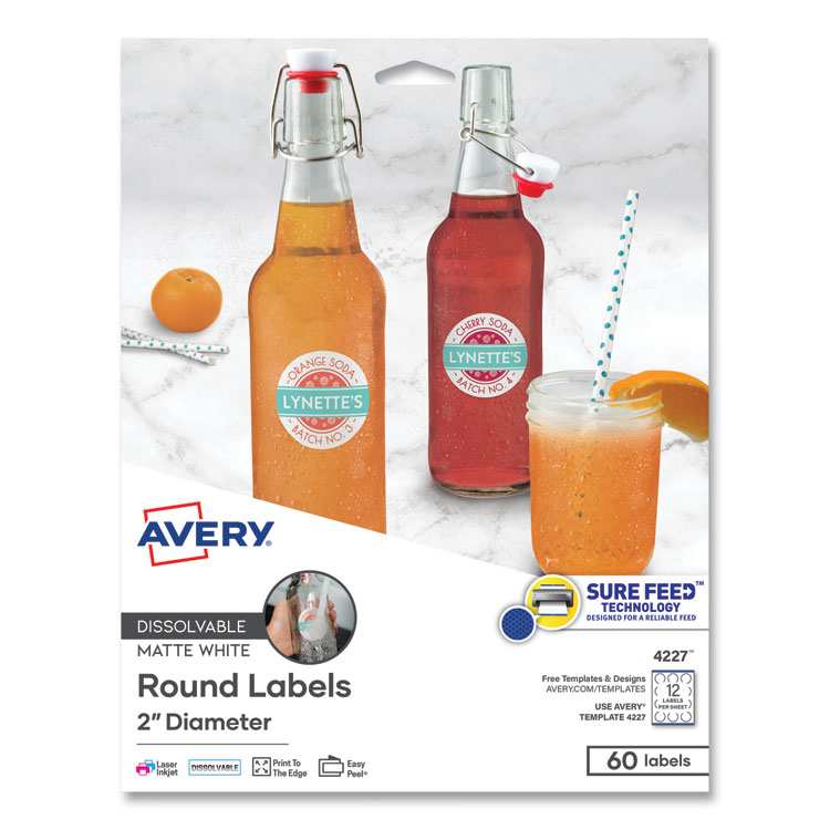 White Dissolvable Labels W/ Sure Feed, 2″ Dia, White, 60/pk,