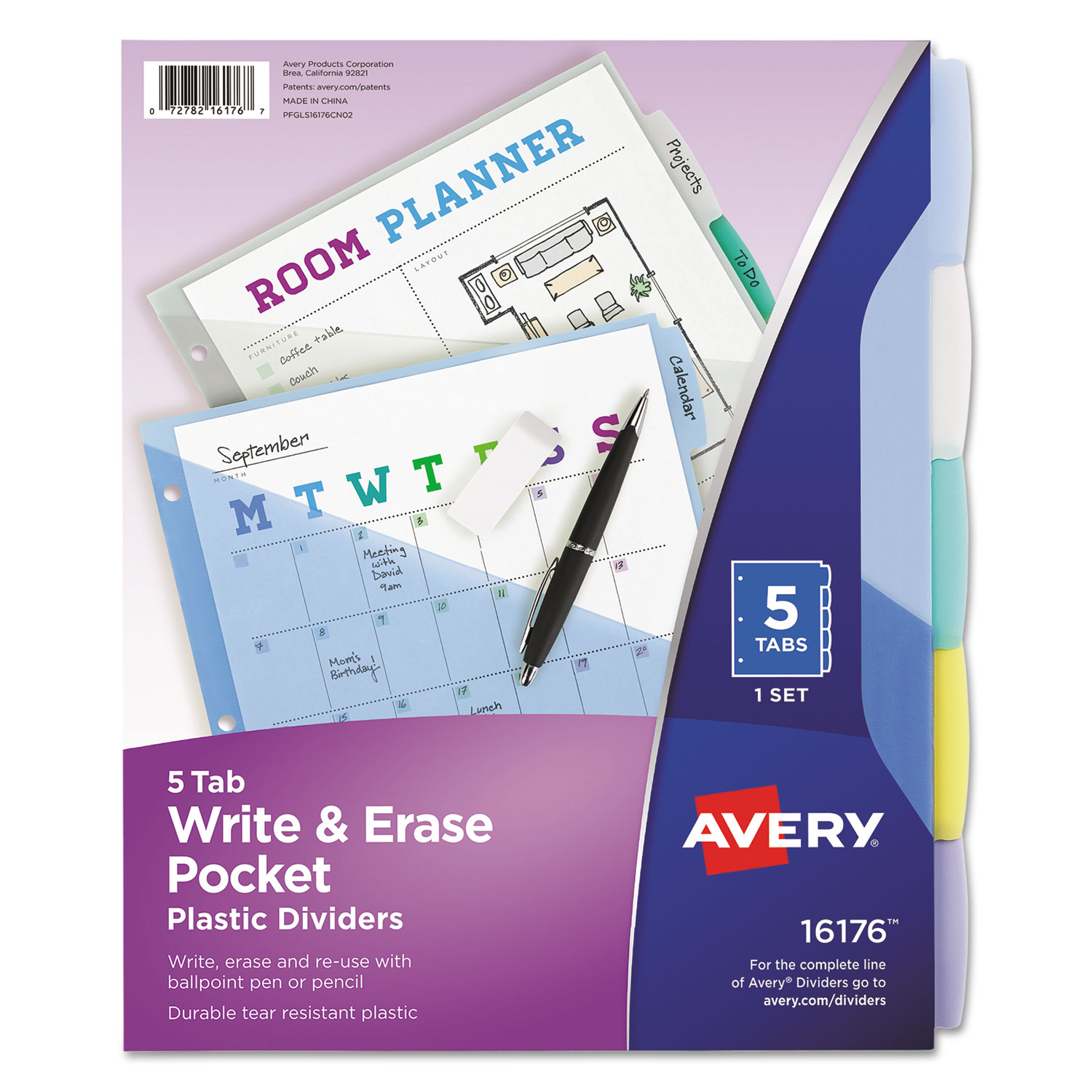 Write And Erase Durable Plastic Dividers With Pocket, 3-Hold Punched, 5-Tab, 11.13 X 9.25, Assorted, 1 Set