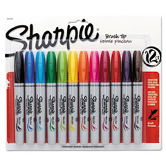 Brush Tip Permanent Marker, Medium Brush Tip, Assorted Colors, 12/set