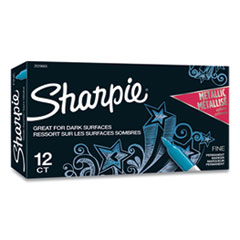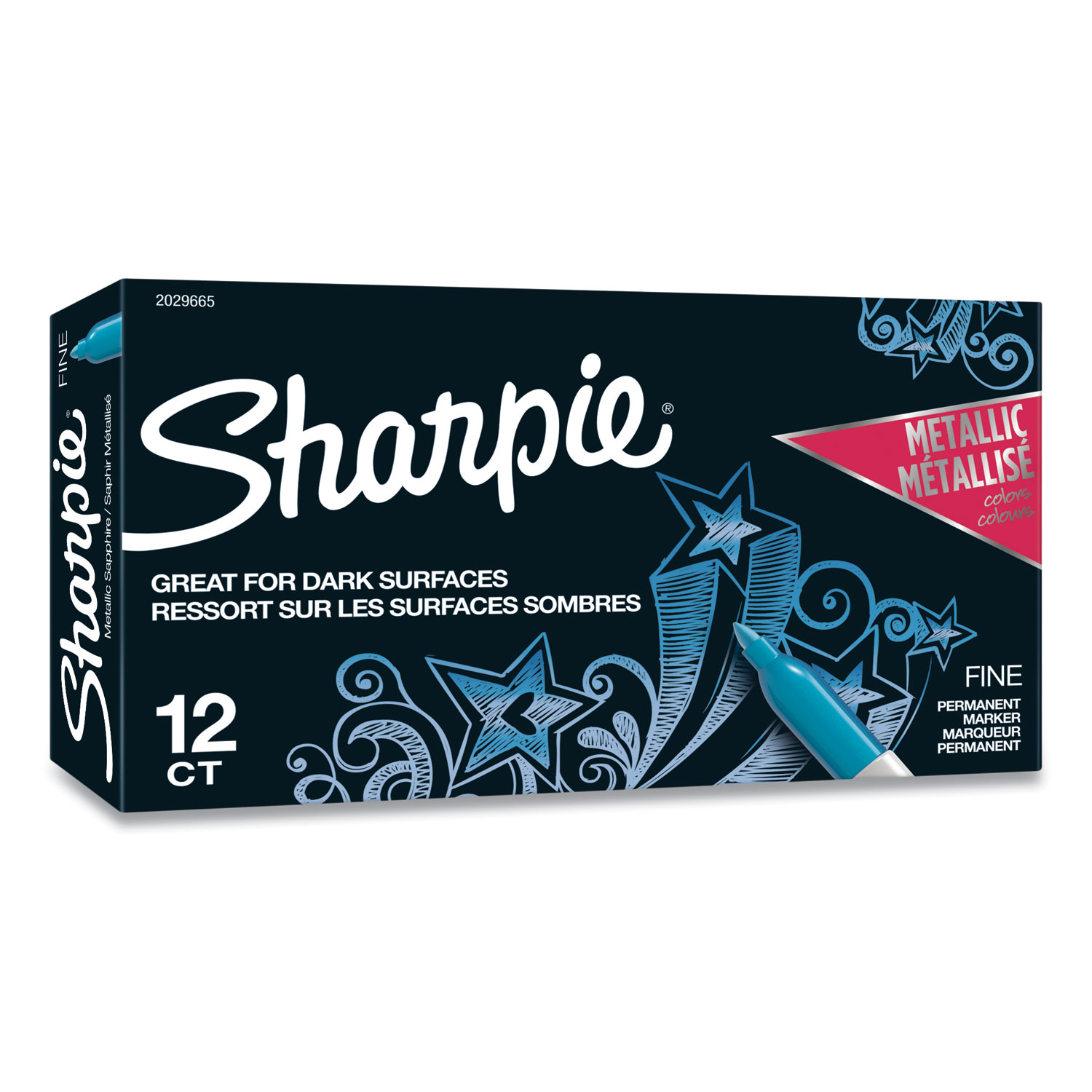 Metallic Fine Point Permanent Markers, Fine Bullet Tip, Blue, Dozen