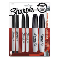 Mixed Point Size Permanent Markers, Assorted Tip Sizes/types, Black, 6/pack