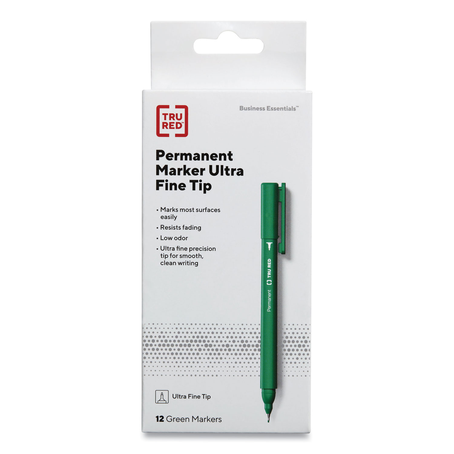 Permanent Marker, Pen-Style, Extra-Fine Needle Tip, Green, Dozen