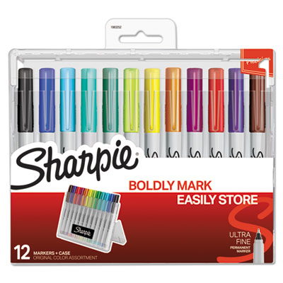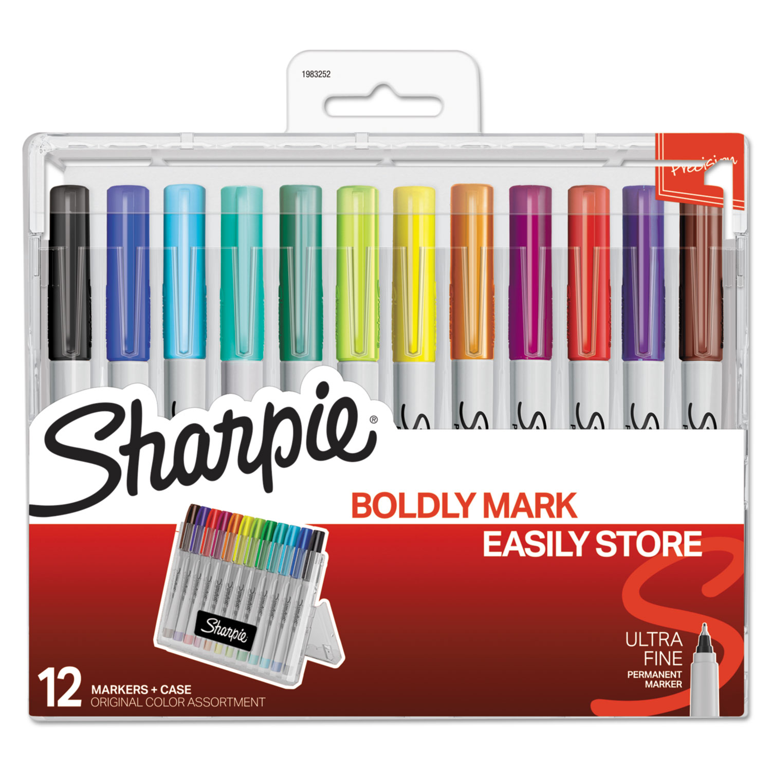 Permanent Markers With Storage Case, Extra-Fine Needle Tip, Assorted Color Set 2, Dozen