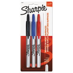 Retractable Permanent Marker, Fine Bullet Tip, Assorted Colors, 3/set