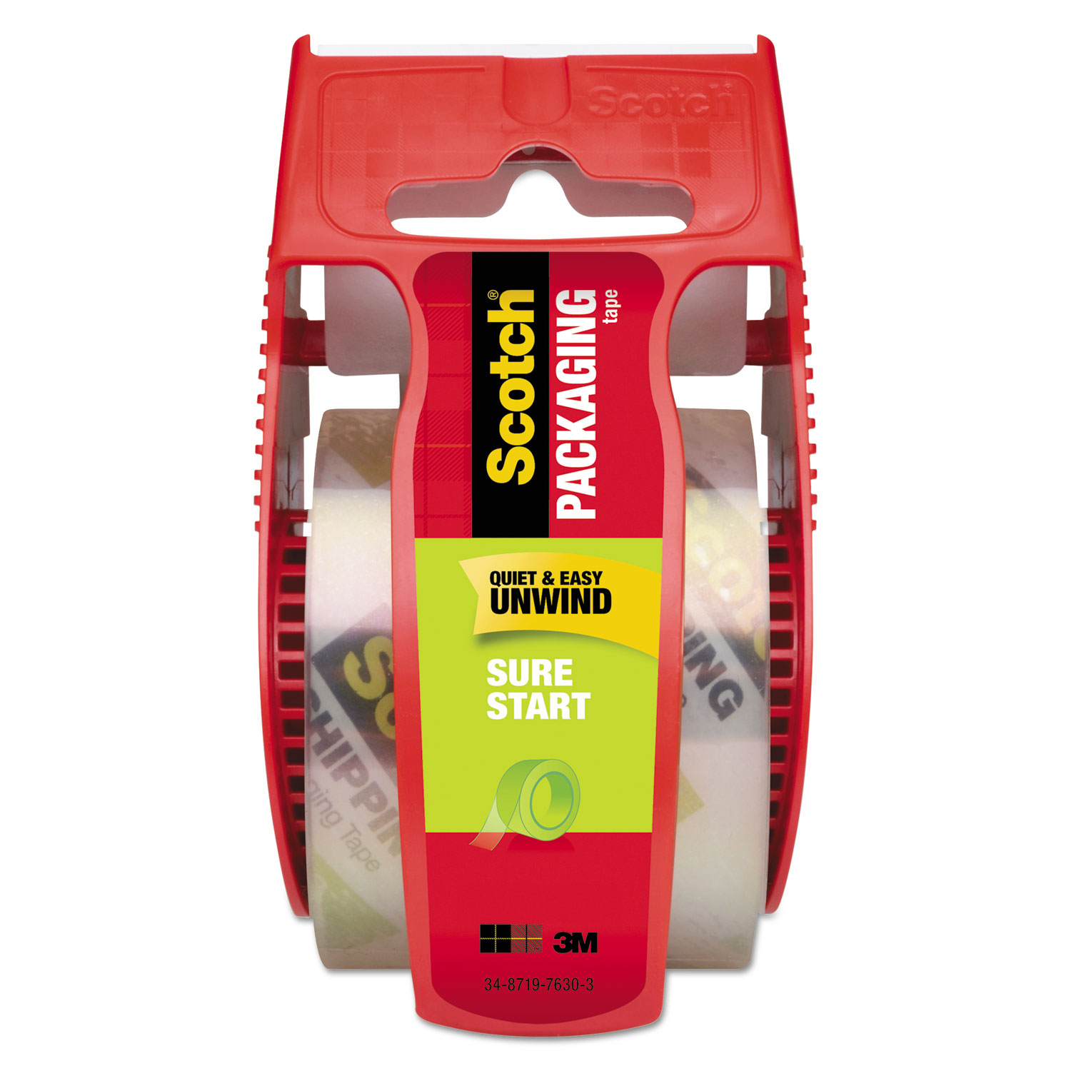 Sure Start Packaging Tape With Dispenser, 1.5″ Core, 1.88″ X 22.2 Yds, Clear