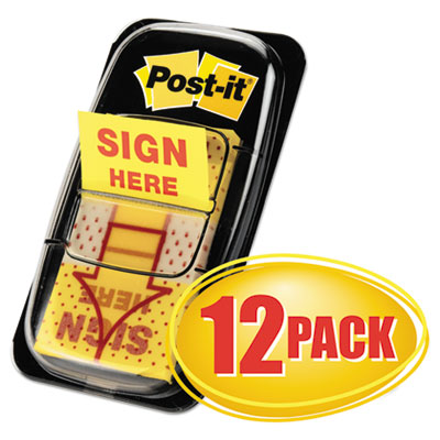 Arrow Message 1″ Page Flags, Sign Here, Yellow, 50/dispenser, 12 Dispensers/pk