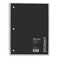 Wirebound Notebook, 4 Subjects, Medium/College Rule, Black Cover, 11 x 8.5, 200 Sheets