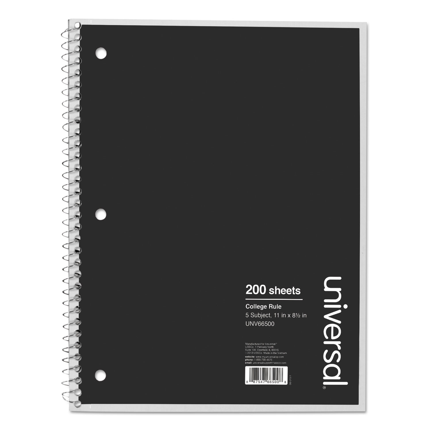 Wirebound Notebook, 4 Subjects, Medium/college Rule, Black Cover, 11 X 8.5, 200 Sheets