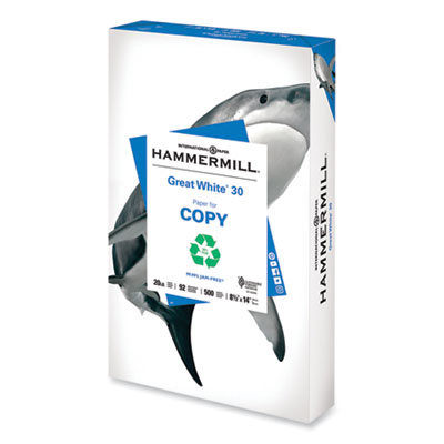 Great White 30 Recycled Print Paper, 92 Bright, 20lb, 8.5 X 14, White, 500/ream