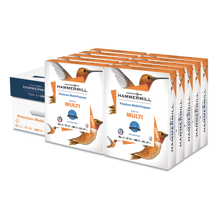 Premium Multipurpose Print Paper, 97 Bright, 20lb, 8.5 x 11, White, 500 Sheets/Ream, 10 Reams/Carton