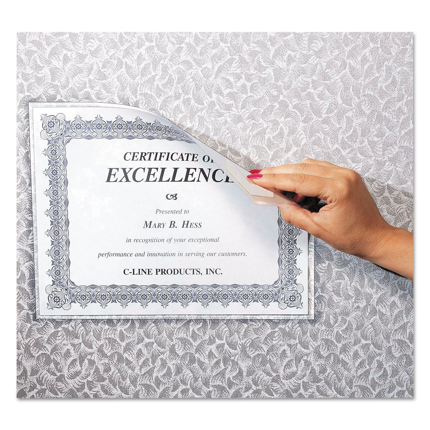 Cubicle Keepers Hook And Loop-Backed Display, 9 13/64 X 11 13/32, Clear, 25/pack