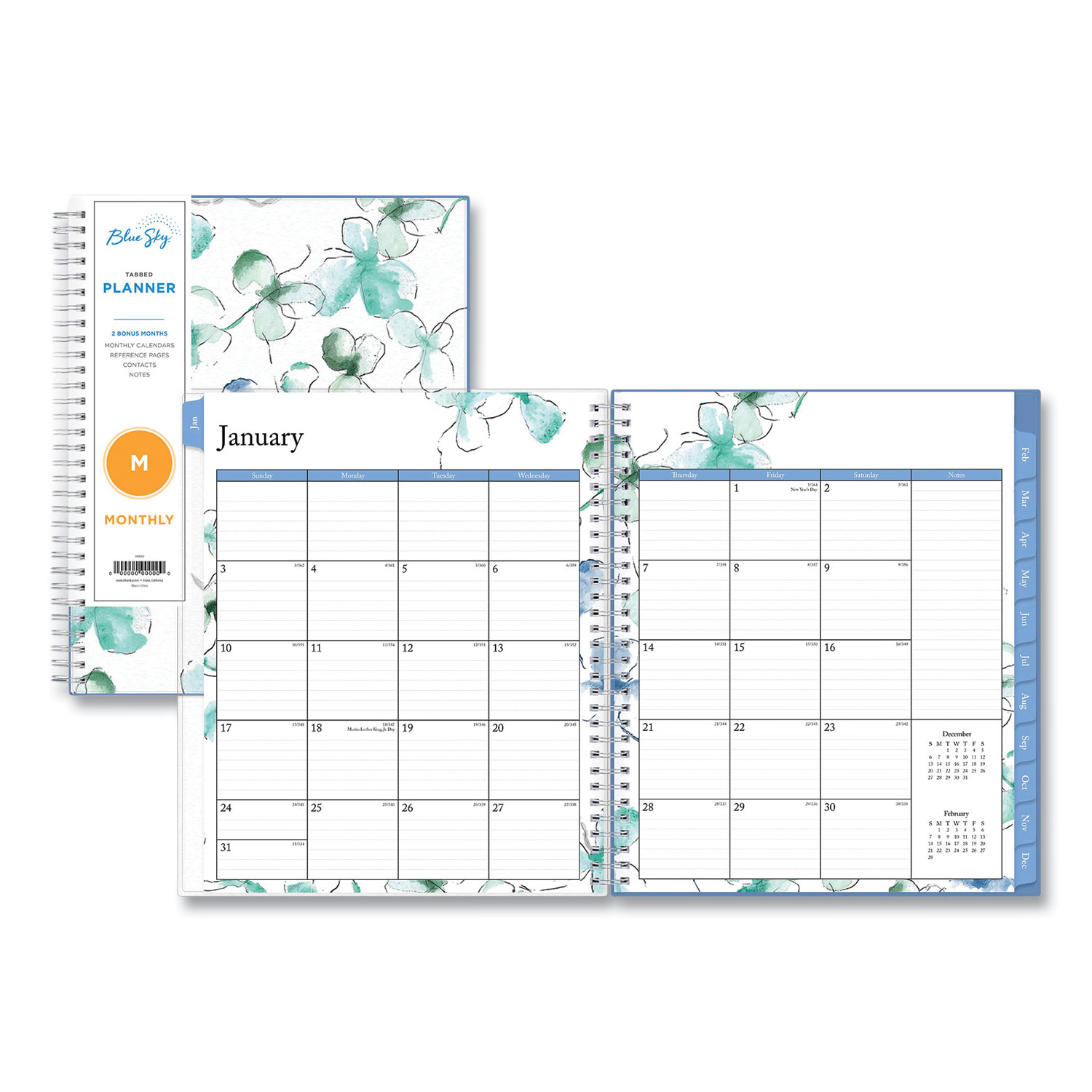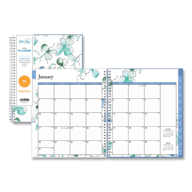 Lindley Monthly Wirebound Planner, 10 X 8, White/blue, 2022