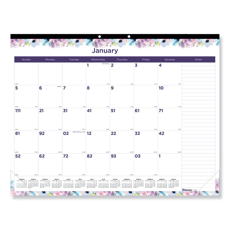 Passion Monthly Deskpad Calendar, Chipboard Back, Floral Design, 22 X 17, 2022