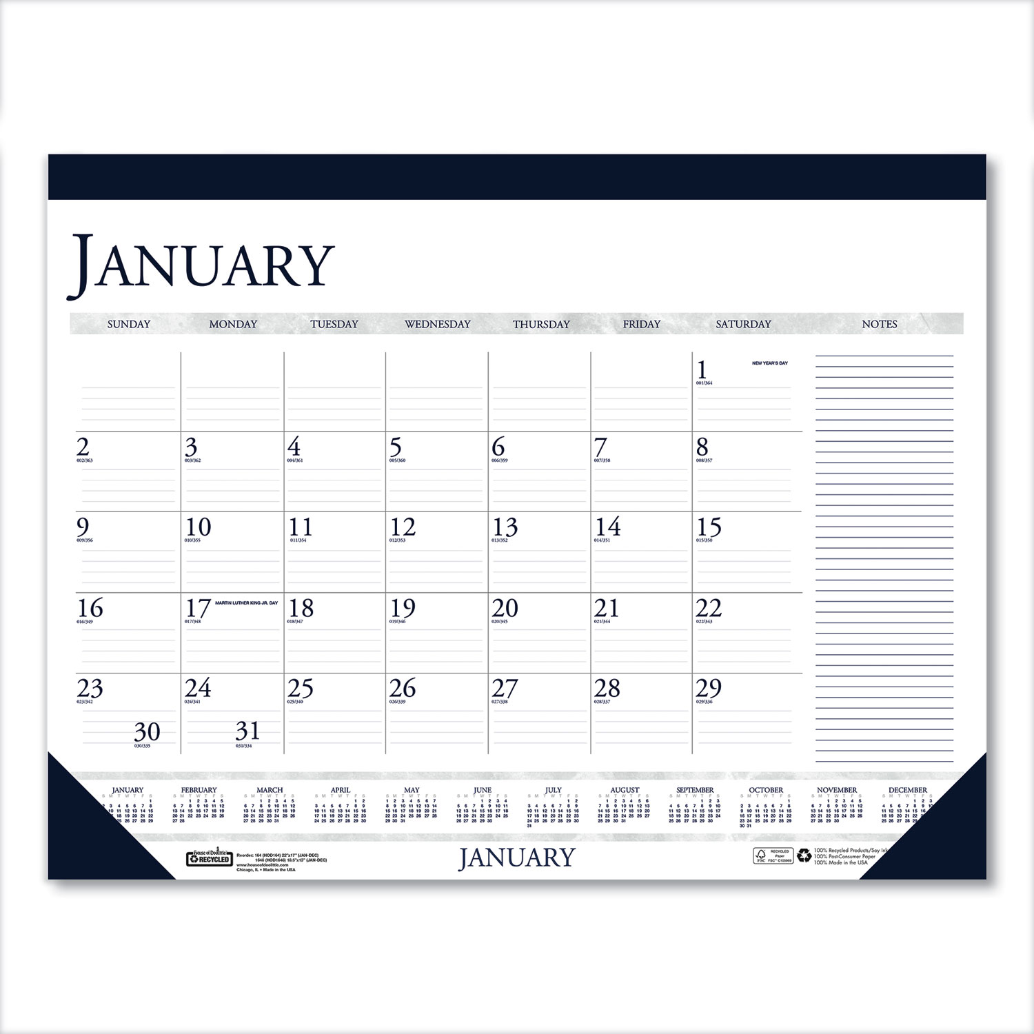 Recycled Two-Color Monthly Desk Calendar With Large Notes Section, 18.5 X13, 2022