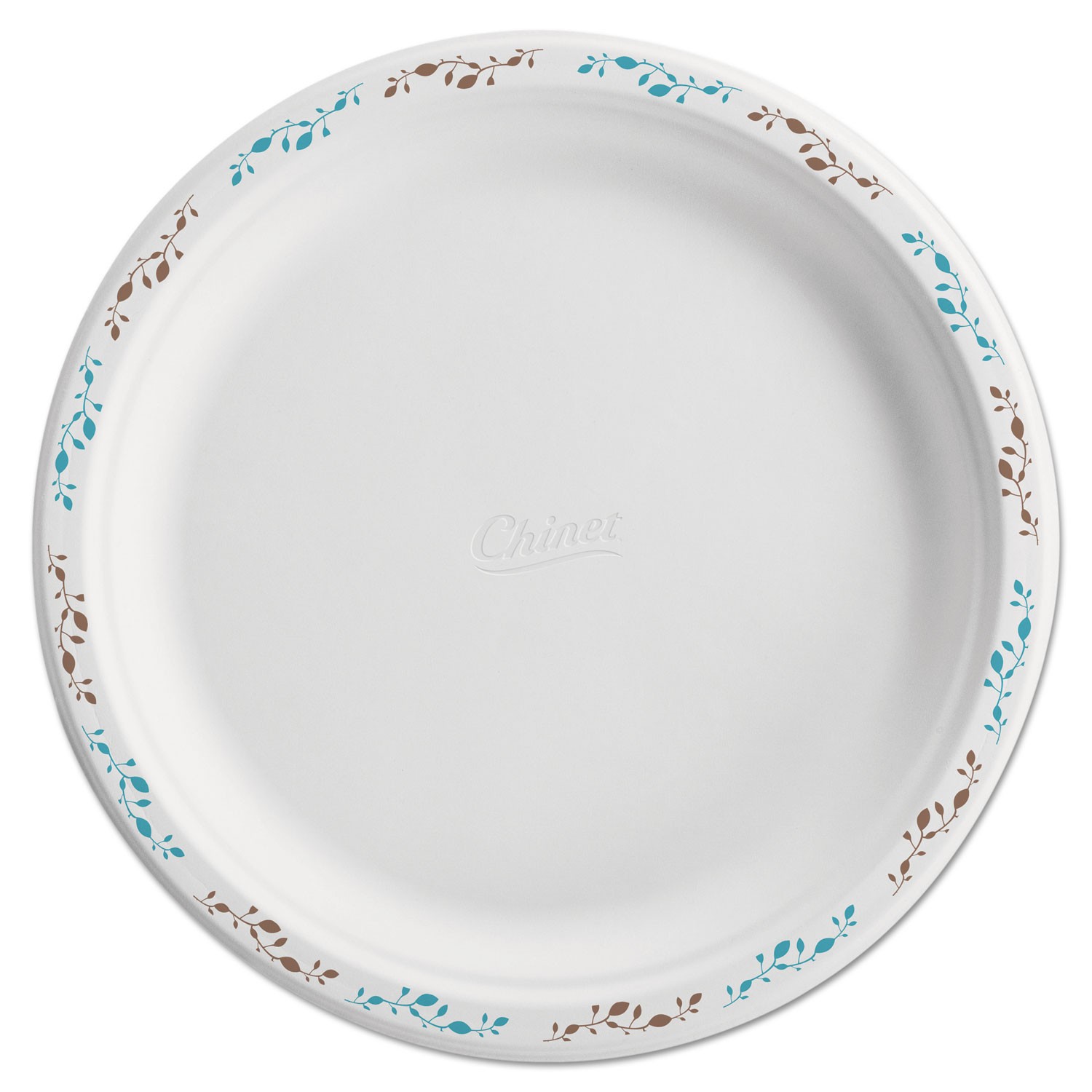 Molded Fiber Dinnerware, Plate, 10.5″ Dia, White, Vine Theme, 125/pack, 4 Packs/carton