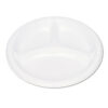 Plastic Dinnerware, Compartment Plates, 9″ Dia, White, 125/pack