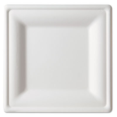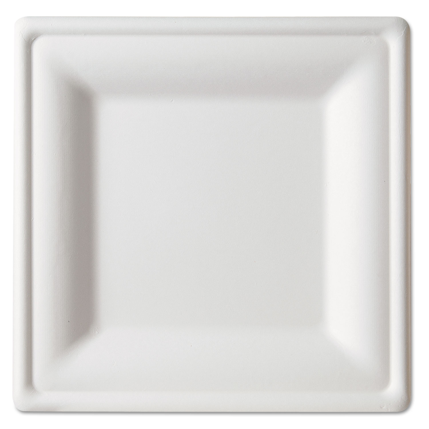 Renewable And Compostable Square Sugarcane Plates, Large, Natural White, 50/pack, 5 Packs/carton