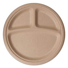 Wheat Straw Dinnerware, 3-Compartment Plate, 10″ Dia, 500/carton