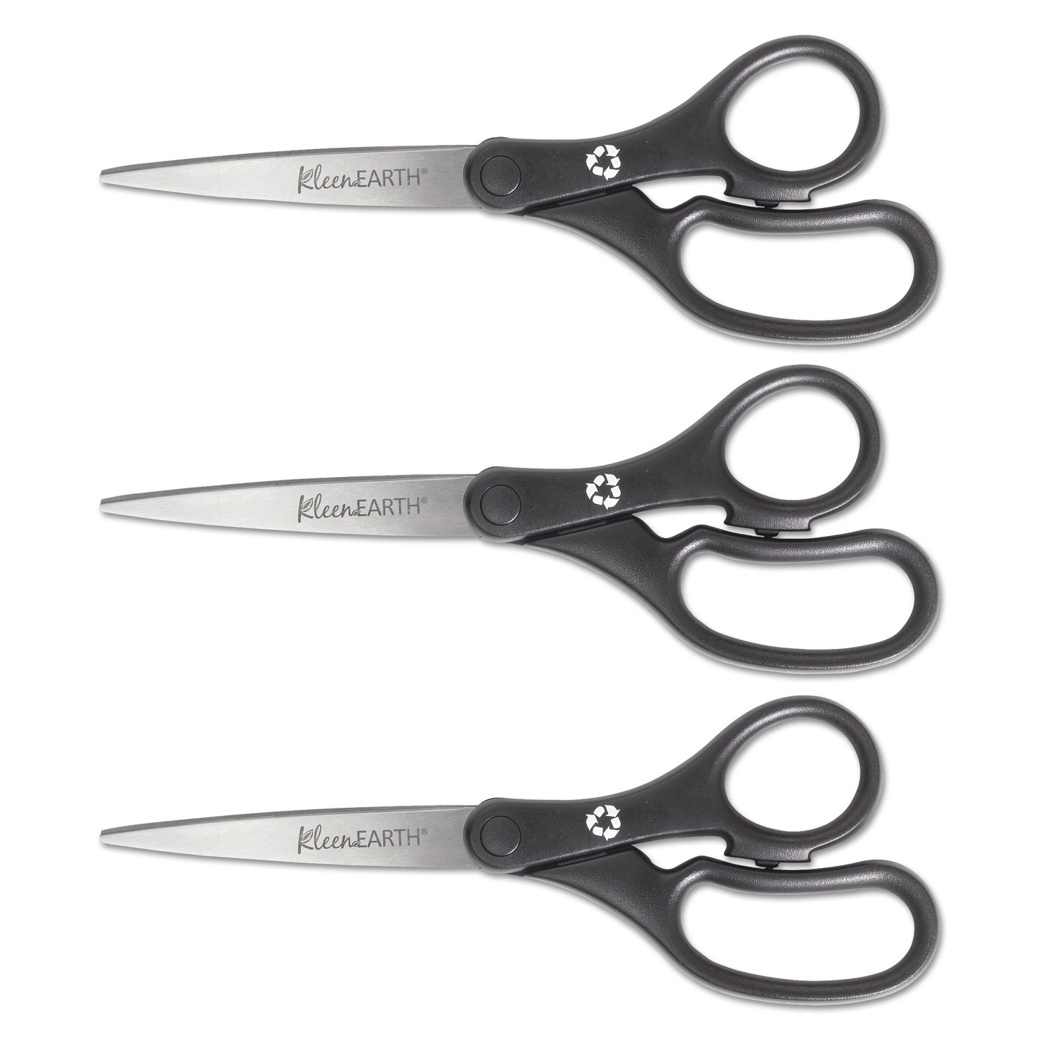 Kleenearth Basic Plastic Handle Scissors, 8″ Long, 3.25″ Cut Length, Black Straight Handles, 3/pack